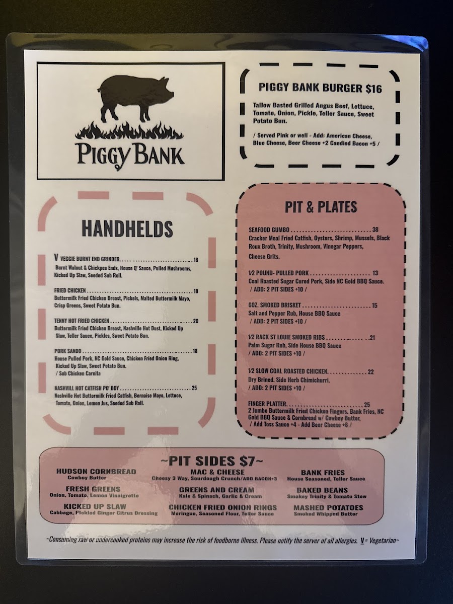 Welcome to The Piggy Bank, a vibrant barbecue haven nestled in Beacon, NY. This delightful eatery dazzles with a menu that boasts a tantalizing array of comfort foods, ensuring every bite is an experience. Guests rave about the fried chicken sandwiches and pulled pork nachos, which are praised for their impeccable layering and flavors. Chef Adam's mastery shines through in the perfectly cooked ribs and Tennessee hot chicken, balancing flavor and crunch exquisitely.
